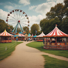 In the distance, the sound of cheerful carnival music floated through the air as funfair rides twirled and spun against the backdrop of the azure sky. A Ferris wheel turned slowly while a carousel spun rhythmically in circles. Nearby, a swing ride twirled thrill-seekers as it tilted and swirled, and a pirate ship swung back and forth. Meanwhile, a helter-skelter, the biggest many had ever seen, took pride of place in the village green. The air was alive with excitement on what was the most perfect summer’s day.